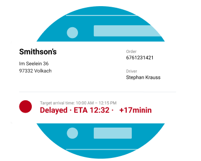 HABBL knows all your orders and their current statuses: Are they on schedule (green)? Will they arrive late (yellow)? Or will they get there late (red)? To make this forecast, the software considers the route, current traffic (including possible traffic jams and detours), and driving and rest periods.