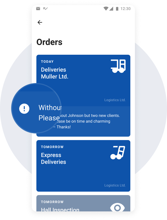 Mobile employees and lorry drivers receive new tasks or orders automatically through the app.